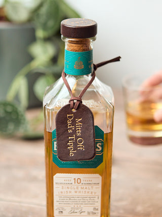Painted Leather Bottle Tag - Personalised gifts for the home - gifts for the bar - little extra gifts - Father’s Day gifts